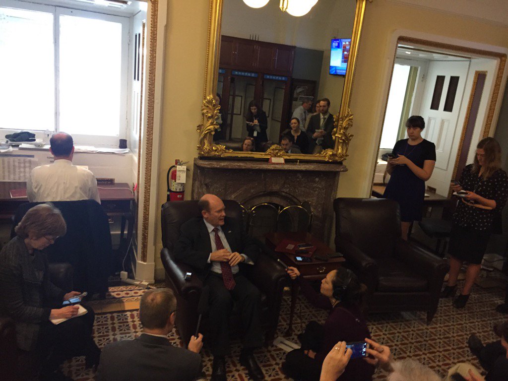 .@ChrisCoons tells reporters Senate should consider a SCOTUS nominee, not "infect" court w/ Hill dysfunctionpic.twitter.com/XvMBezFJUi