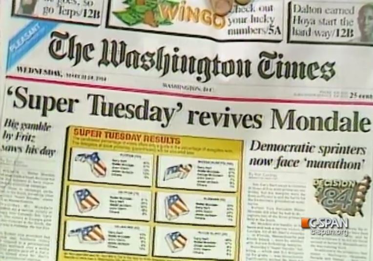 1984 #SuperTuesday headlines ... cc: @singernews pic.twitter.com/cYmyG3xBLL