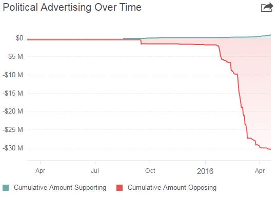 Here's what the deluge of anti-Trump advertising looks like in chart form http://www.usatoday.com/story/news/politics/onpolitics/2016/04/20/anti-trump-groups-ad-money/83284582/ … pic.twitter.com/ianSkVcpbK