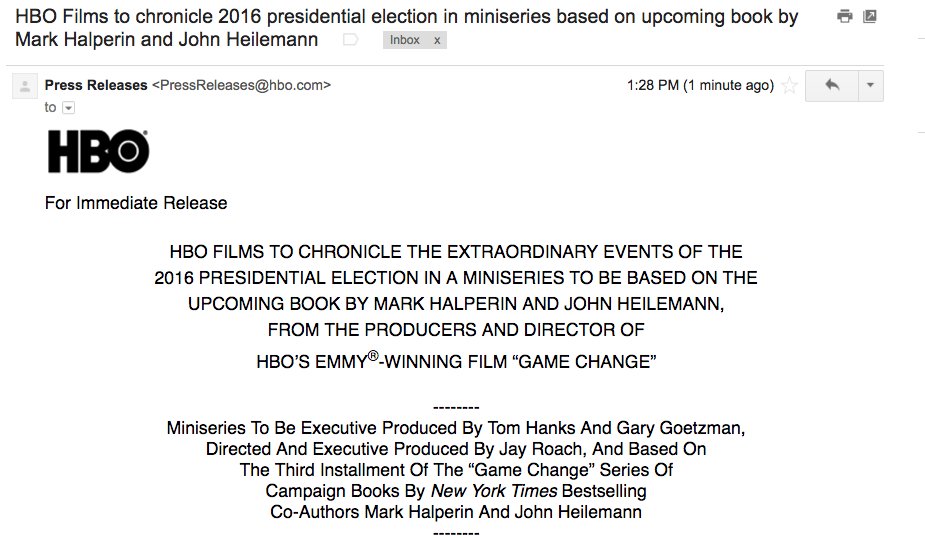 HBO will make the next Halperin/Heilemann book about the election into a miniseries. Let the casting begin. pic.twitter.com/jEkw15zuaj