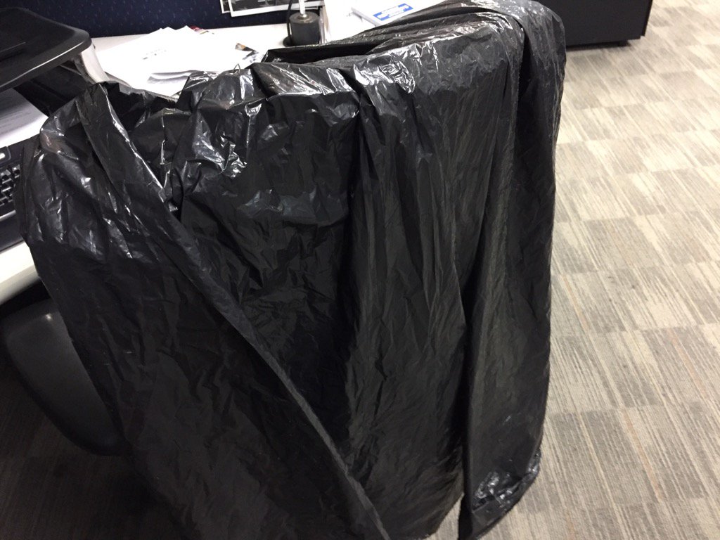 Saved from the downpour by some guy on the bus who had an extra trash bag. Thanks, pal! #payitforwardpic.twitter.com/aBNCoPQO97