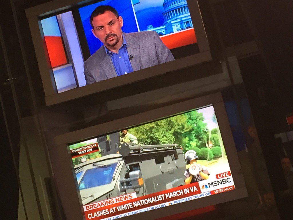 About to go on @MSNBC with @AlexWitt ... while fists fly in streets of #Charlottesvillepic.twitter.com/qso1sLdBwl