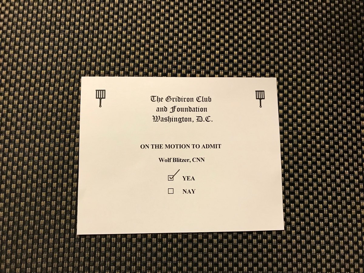 Congratulations to @wolfblitzer, elected today as the 512th member of the Gridiron Club. The oldest association of journalists in Washington was founded in 1885. pic.twitter.com/0cmMUWjqmy