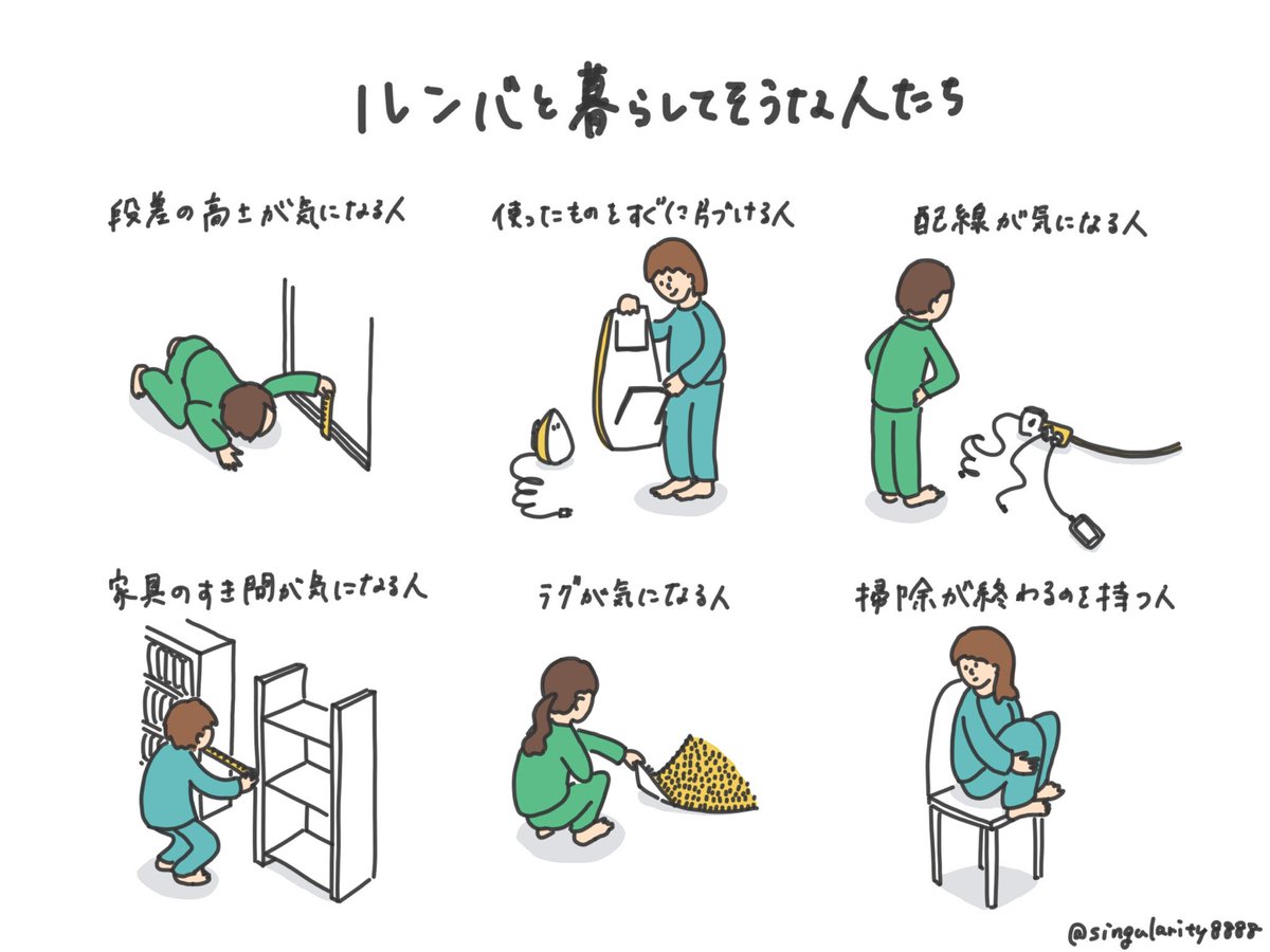 先日家にルンバが導入されたので、ルンバと暮らしてそうな人一覧を描きました。