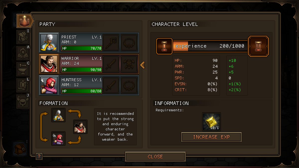 Latest update introduced the leveling system into the game. Heroes gain experience by killing monsters, completing quests, and using special knowledge stones. Each level up gives bonuses to the main stats of the hero, so this is another good way to get stronger.