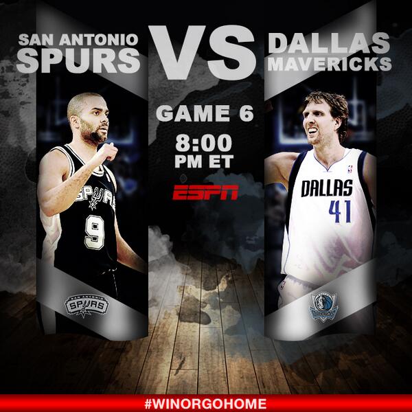 #WINorGoHome for the@DallasMavs as the@Spurs look to advance!#SPURSvMAVS Game 6, 8pm/et on@ESPNNBA.pic.twitter.com/IVI6nOGW58