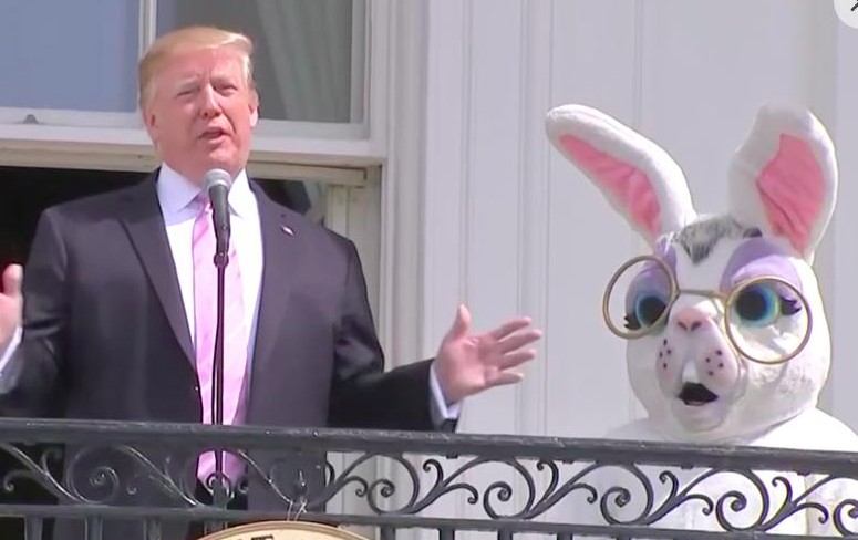 The Easter bunny costume was designed so that it would be making the appropriate face when Trump veered off script to tell the assembled egg-hunters a long story about how rudely Heather Locklear snubbed him at the 1993 Kids Choice Awards.pic.twitter.com/QcFysTzx1r