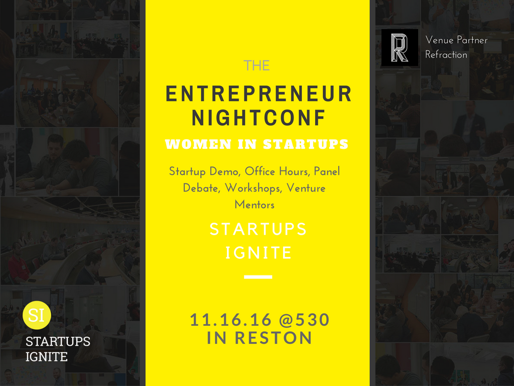 #Entrpreneurs#NightConf#Women in Startups Edition. This 11/16 at 5:30pm in Reston, VA. More details & RSVP: http://bit.ly/nightconf pic.twitter.com/M6pvsQuOmN