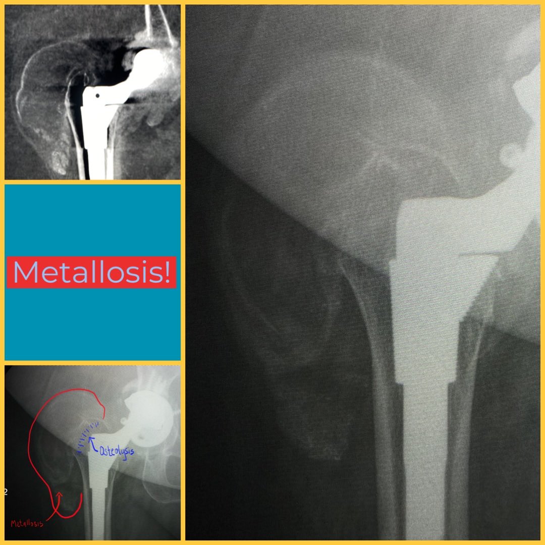 #radres education - Metallosis, also known as pseudotumor and usually co-existing with particle disease (osteolysis).pic.twitter.com/kq5bnAxFYs