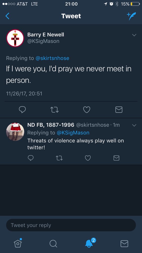 I blocked after the deleted tweet. I don't need the headache with some MRA incel.