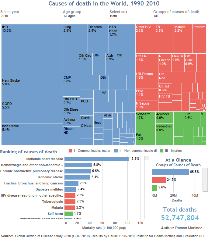 Inspiration for your #vitalstatsviz project: Causes of Death in the World. 1990, 2005, 2010 http://healthintelligence.drupalgardens.com/content/causes-death-world-1990-2005-2010 …pic.twitter.com/j13HBI8PHn
