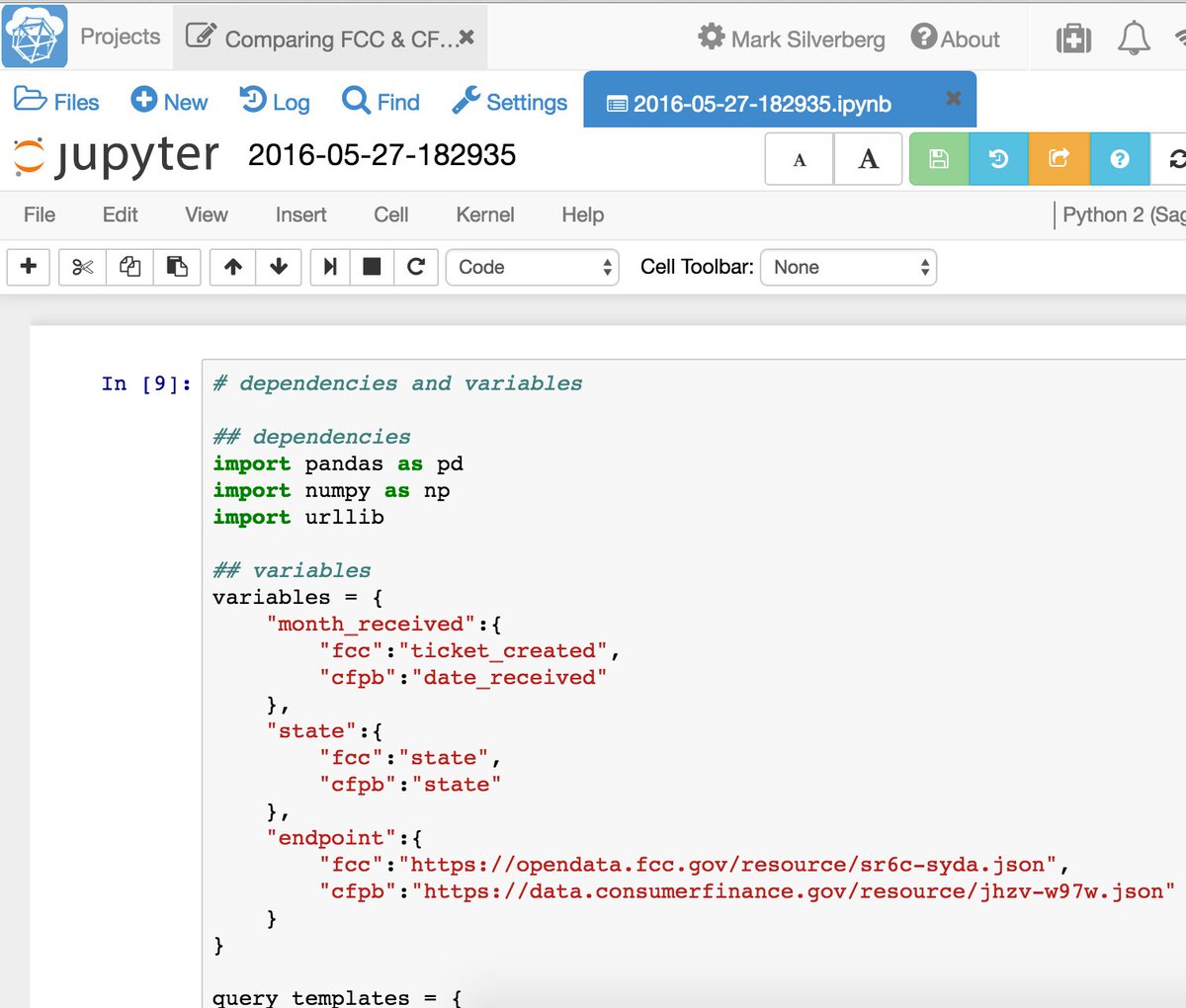 Analyzing @socrata #API powered #opendata from @FCC and @CFPB using python on @sagemathcloud w/ @ProjectJupyterpic.twitter.com/27BgWFpxjA