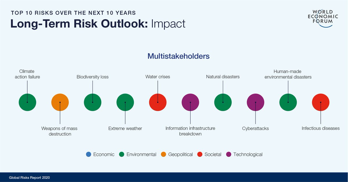 @wef, for the 1st time in history, environmental issues dominate the top 5 risks to the global economy. https://www.weforum.org/reports/the-global-risks-report-2020 …pic.twitter.com/PGEGJ9KrtH