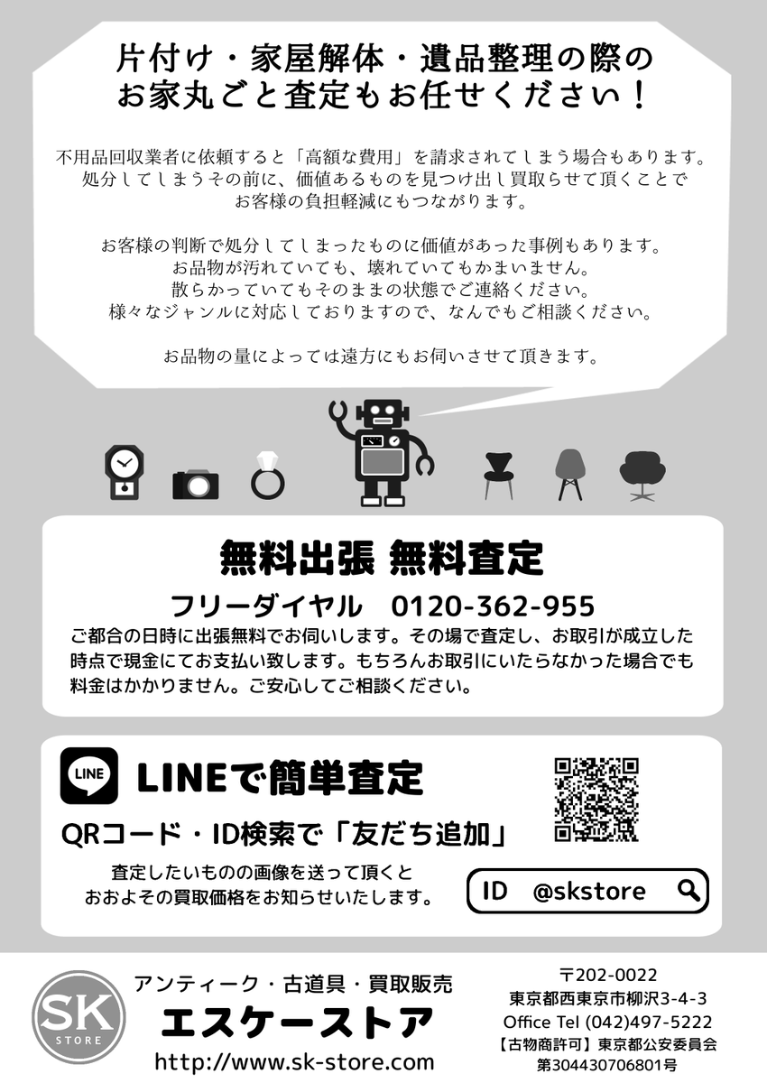 #出張買取 SKSTORE 関東全域対応#遺品整理#生前整理 処分の前にまず電話!#西東京#SKSTORE#買取#出張無料#査定無料 フリーダイヤル #0120-362-955 https://sk-store.com pic.twitter.com/uSHboyHNhy
