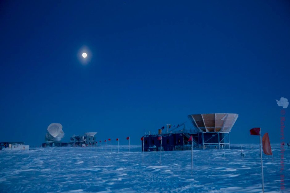 Jupiter finally visible! Day 13 of civil twilight at the South Pole since the equinox sunset. The Sun is now 5° below the horizon, the brightest stars & planets have become visible to the naked eye. Here’s the Moon, with Jupiter at the top of this photo by Robert Schwarz