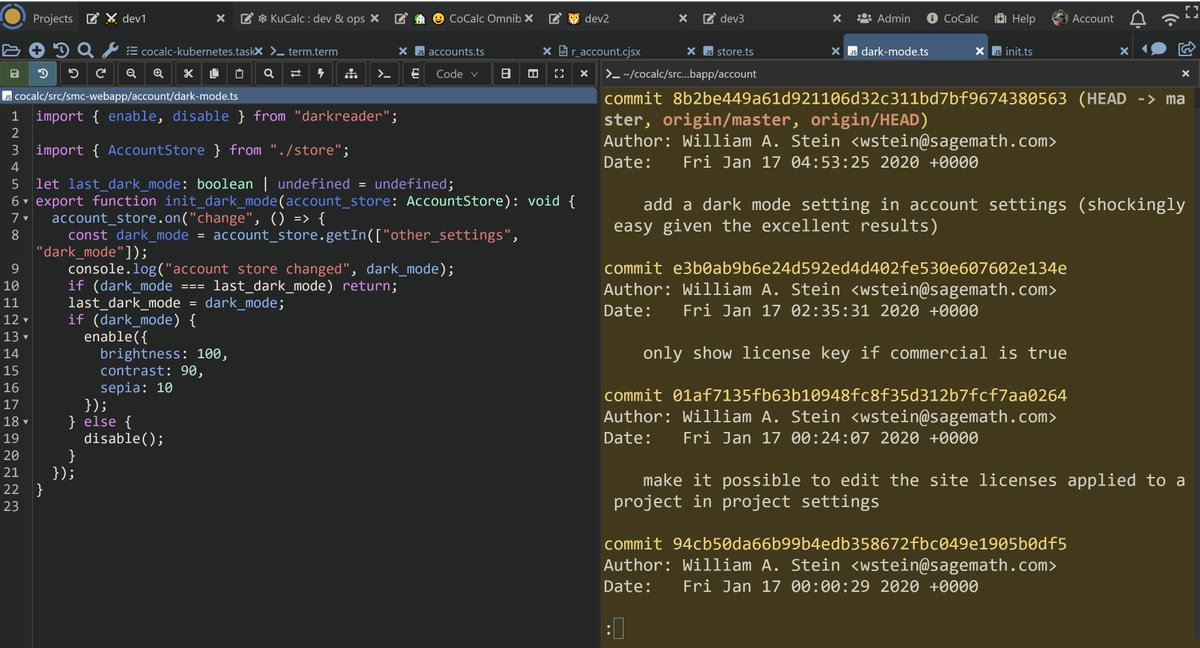 Nice new feature: dark mode on CoCalc