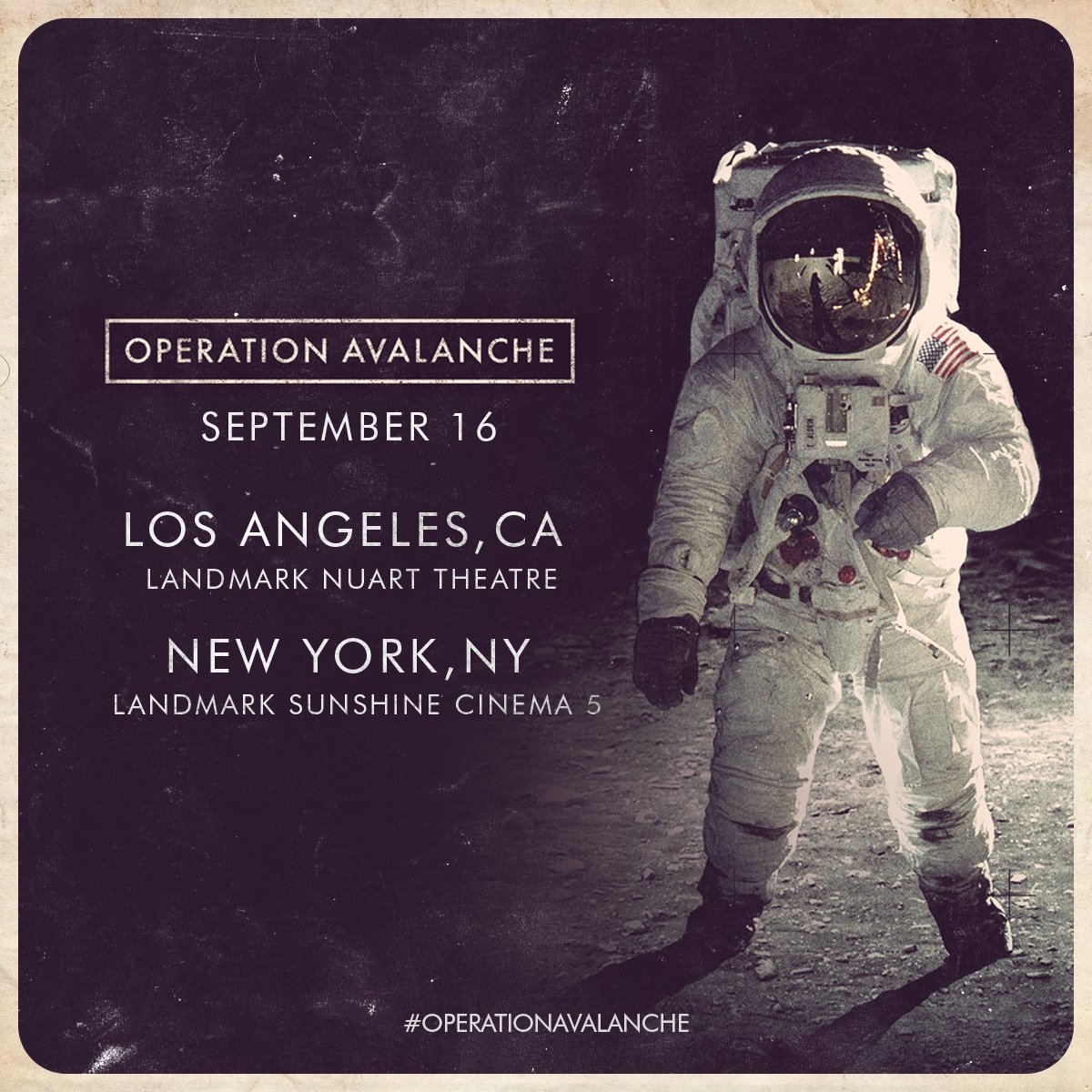 #OperationAvalanche opens in NYC and LA this Friday. Stay tuned for more cities! http://www.operationavalanche-movie.com/ pic.twitter.com/1JskEo5FMa