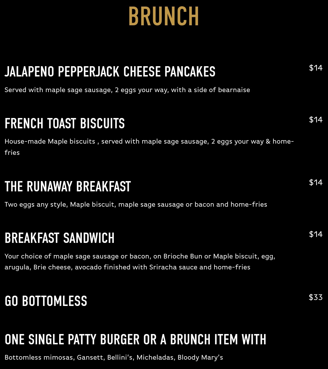 The brunch looks good too and there's a bottomless mimosa, bloody and michelada option
