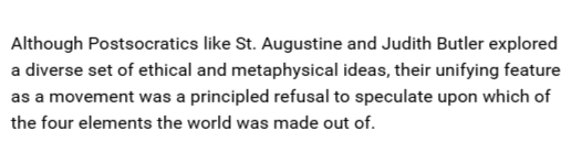Although Postsocratics like St. Augustine and Judith Butler explored a diverse set of ethical and metaphysical..pic.twitter.com/VdA63xHPma