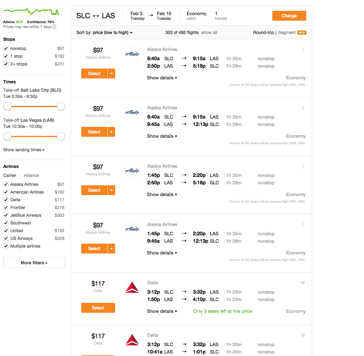 SLC to Vegas round trip for 97$ on Alaskan Airlines, rated #1 domestic airline.