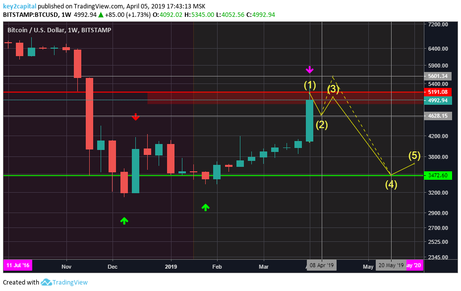Подытожу данным изображением прогноз, озвученный в последнем видео обзоре. Если так и случится, это будет последнее погружение битка в районе $3300-3600. Минимальное спекулятивное значение возможно до $2900.