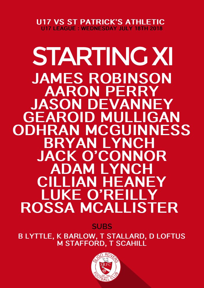 @stpatsfc tonight at 8pm at The Showgrounds#loi17https://twitter.com/sligorovers/status/1019165435491770368 …