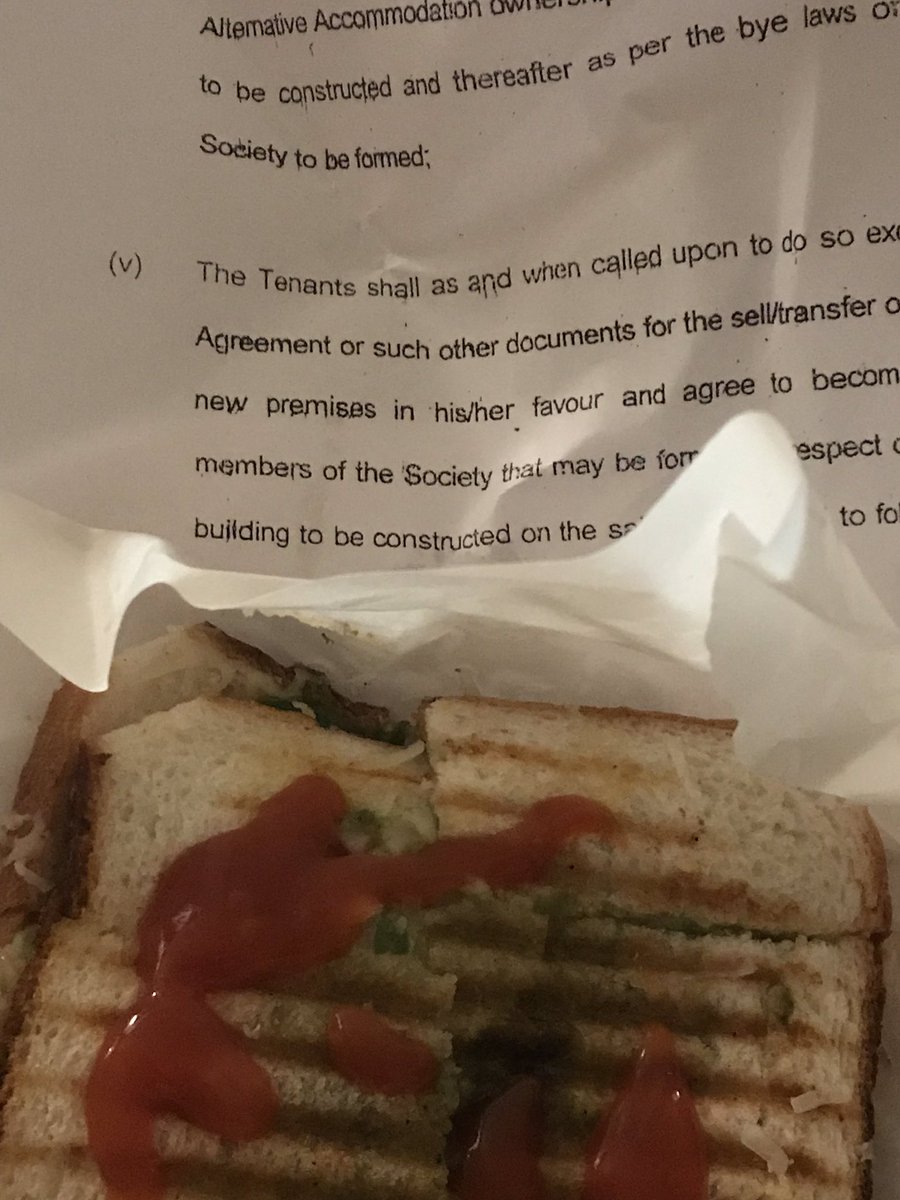 Weekly I get chilli cheese toast from near High Court . comes wrapped in a court case. enjoyable read w a tasty snack. In this one landlord suing tenant 4 withholding rent coz concrete from ceiling was falling down. Landlord says it missed tenant so why is he withholding rent