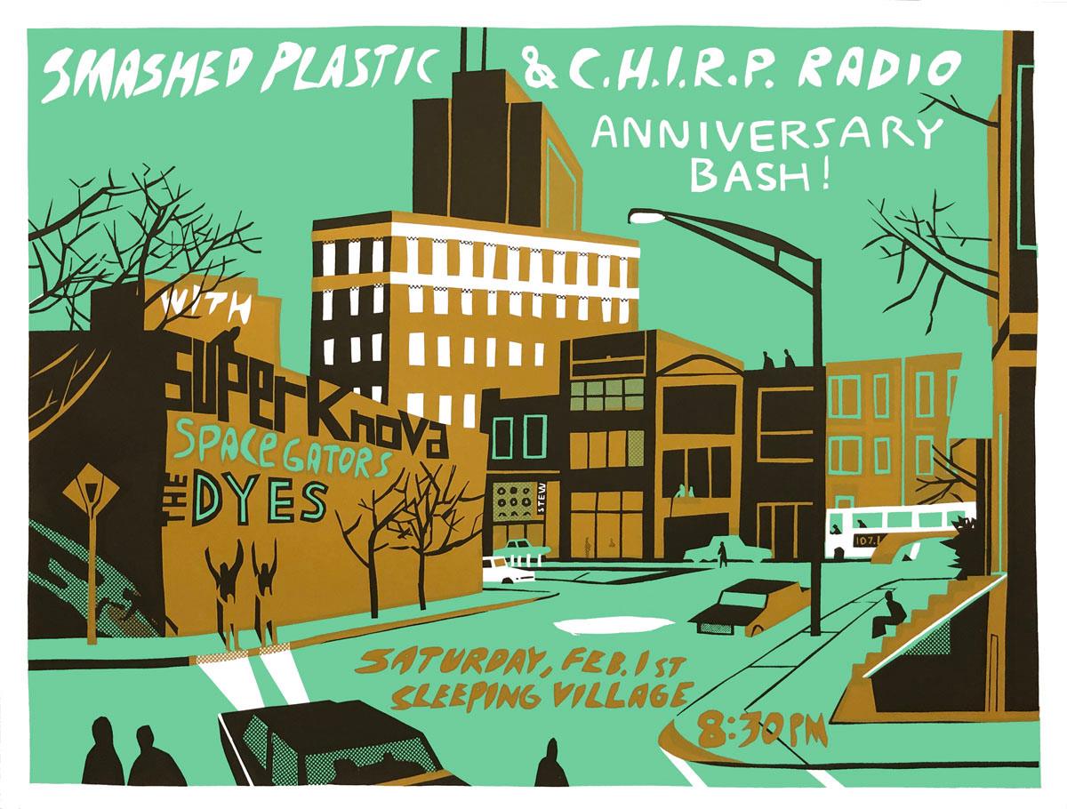 @smashedplastic +@CHIRPRadio Anniversary Bash feat.@SuperKnovaMusic,@TheDyesBand,@SpaceGators 9:30PM | $12 | 21+