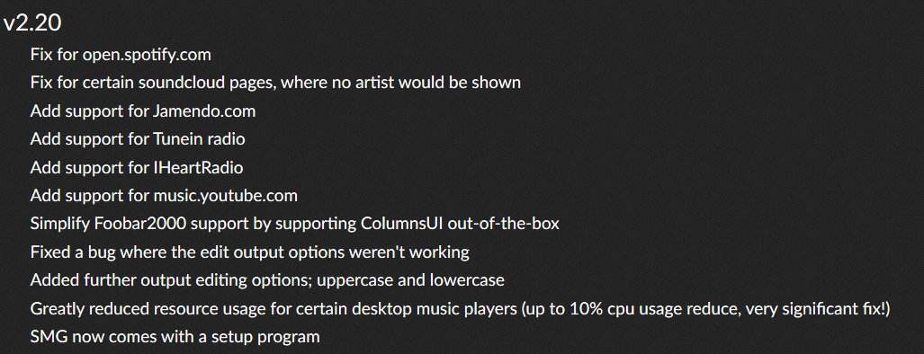 Just released SMG version 2.20! This update brings a lot of improvements, options and support for a several new music players! https://smgmusicdisplay.com/download.php pic.twitter.com/6T6gQap53d