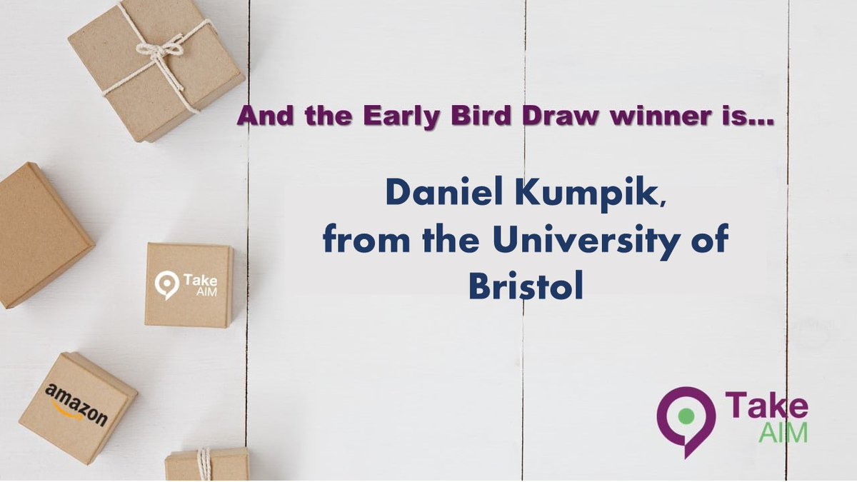 @BristolUni who was drawn as the TakeAIM Early Bird Winner and will receive £50 worth of Amazon vouchers. Students have until 12th December to submit their research, for the chance to win £1000 top prize and present to our sponsors.pic.twitter.com/w9k6g07o4Z