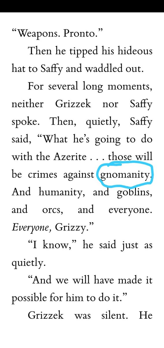I'm very curious as to the accepted group nouns for other races now. Gnomanity has a great ring to it, but what'd it be for, say, goblins? Tauren? Hmm...