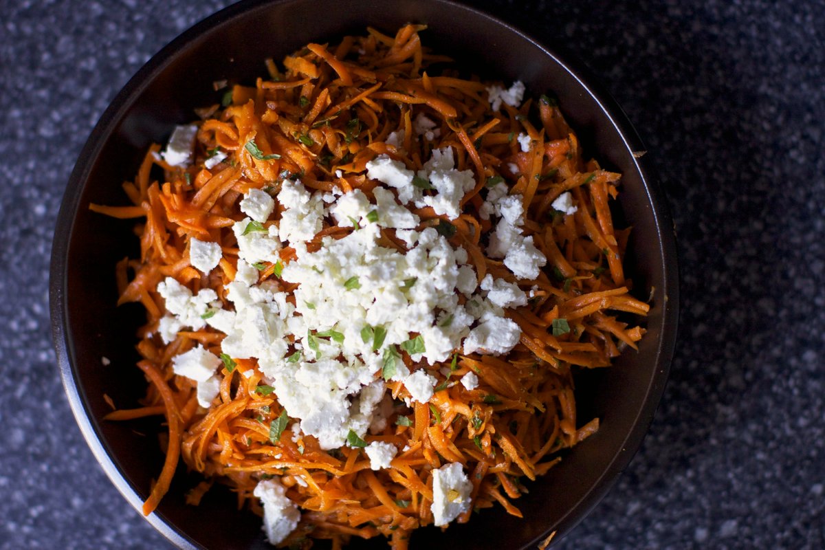 Grated carrots = boring? This salad, loud with cumin, harissa, mint, garlic, lemon and feta, never got the memo: https://goo.gl/D2IGQd pic.twitter.com/6znGYvcxP4