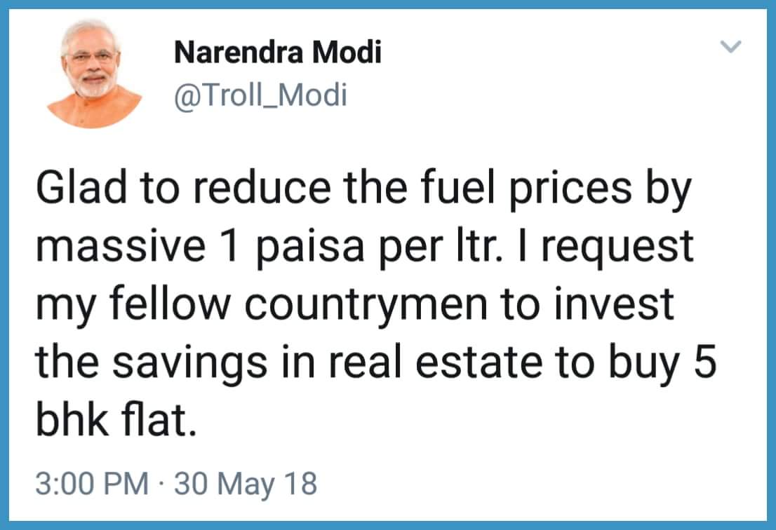 I am so proud of my government which has reduced Petrol price by ONE PAISA. Citizen will never forget this kindness.