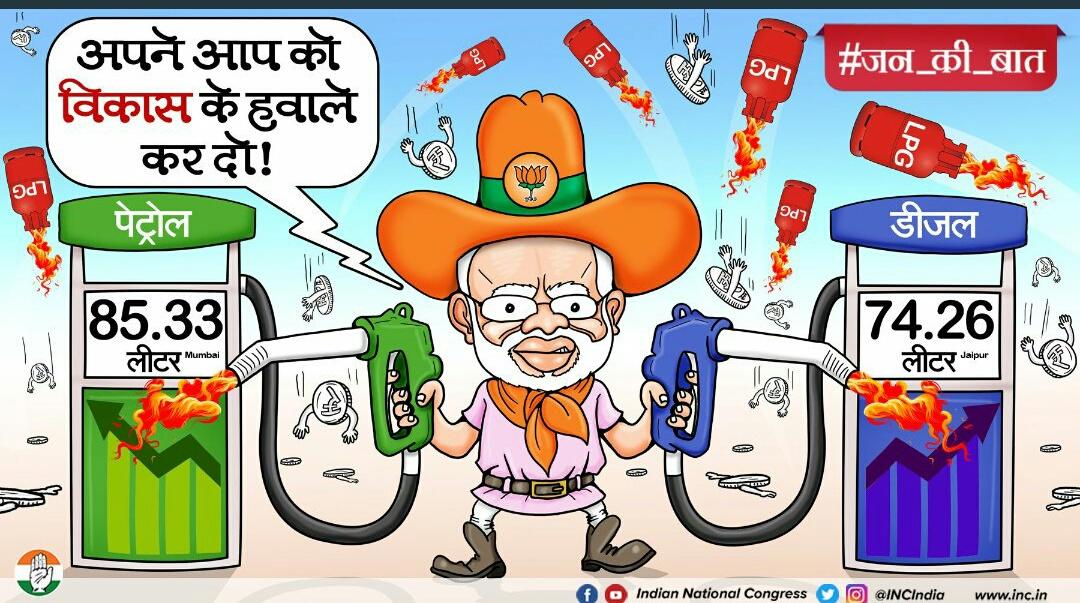 पेट्रोल डीजल की कीमत में आज रिकॉर्ड बढ़ोतरी हुई है. क्या नरेंद्र मोदी जी या भाजपा गवर्नमेंट इसके ऊपर कुछ बोलेगी या चूड़ियां पहन कर बैठी हैं? 2014 से पहले भाजपा सरकार महंगाई और पेट्रोल के बारे में जो बातें करती थी आज जनता के साथ धोखा करके उन बातों को जुमला साबित कर रही है