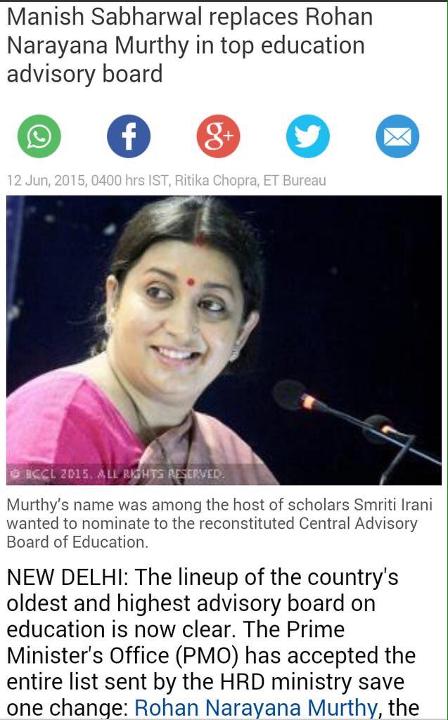 @smritiirani@RajivMessage Rohan out of advisory board, Mr.Murthy goes ballistic against govt & calls intolerance ?pic.twitter.com/p2JvKI8Dp7