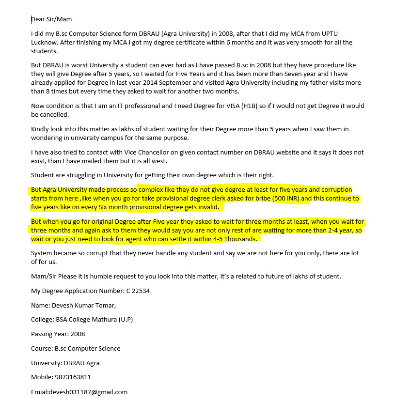 @smritiirani@HRDMinistry Please help DBRAU Agra students in issuing degree ontime so their future might not affect.pic.twitter.com/n2GdnlX3ow