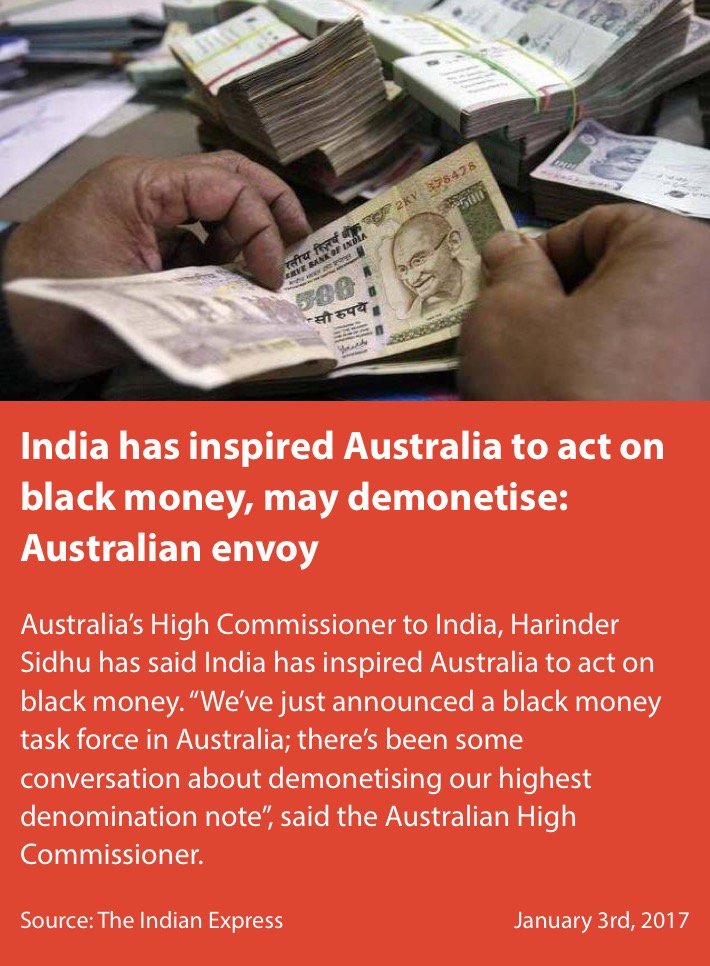 Not only Australia,whole world is inspired to the act of demonetisation of Indian Govt. except opposition leaders of India.