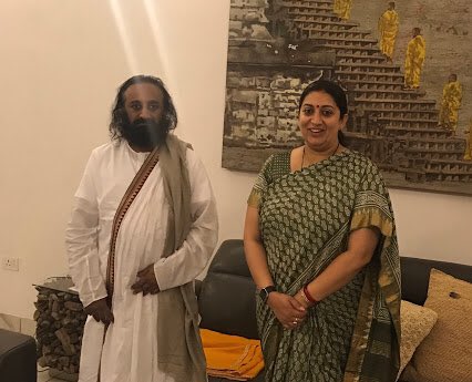 Wishing Smt @smritiirani Ji many many blessed returns of the Day! ( File Pic with Gurudev @SriSri )pic.twitter.com/b7VXc1Qz7D