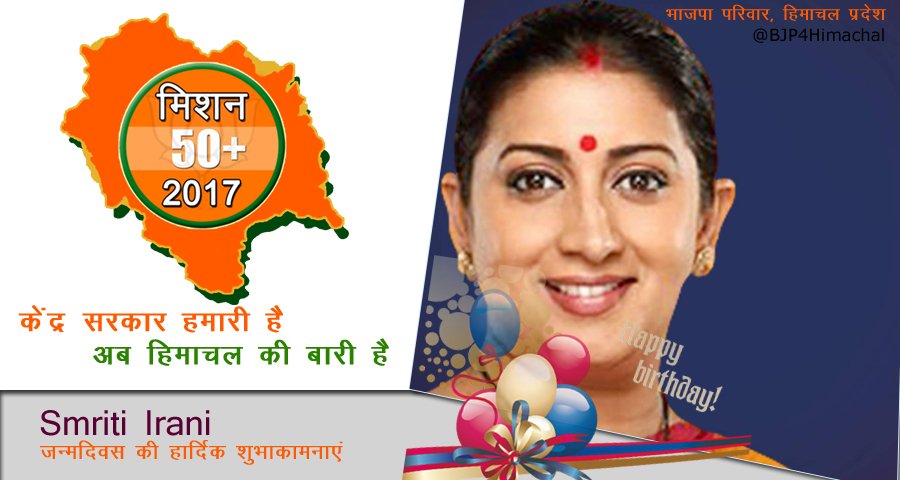 Happy Birthday maam @smritiirani God bless you always , best wishes from @BJP4Himachal #BJP Himachal Familypic.twitter.com/gr3pk9wEFP