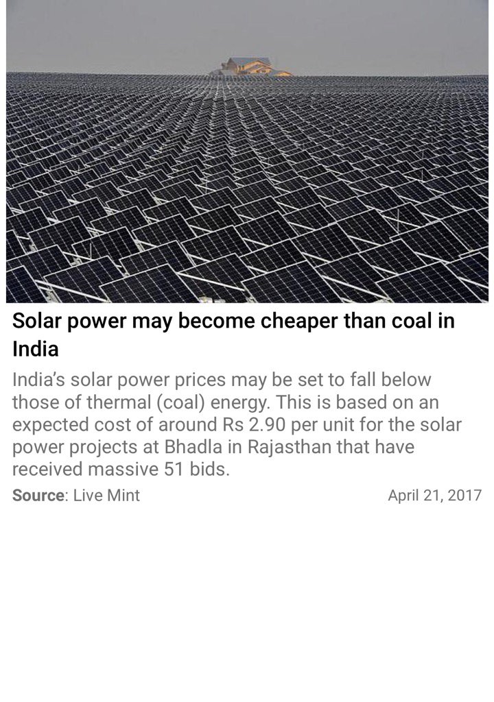 This is great news for us. It woUlf awesome if India can lead the way into solar power pollution free .
