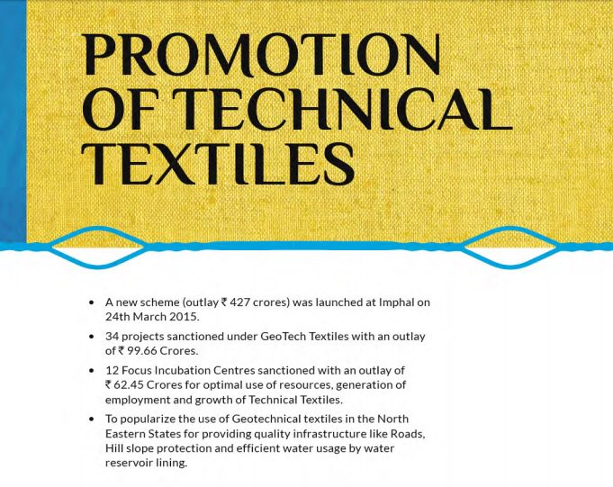 SURESH@4 # 3YEARSOFGOVT 34 PROJECTS HAVE BEEN SANCTIONED UNDER GEO TECH TEXTILESTO PROMOTE TECHNICAL TEXTILES IN THE COUNTRY.