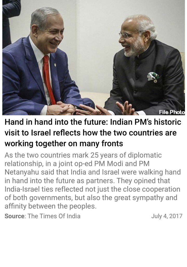 His historic visit will be mutually beneficial and certainly brighten the future of both the countries.Long live Indo-Israel friendship.