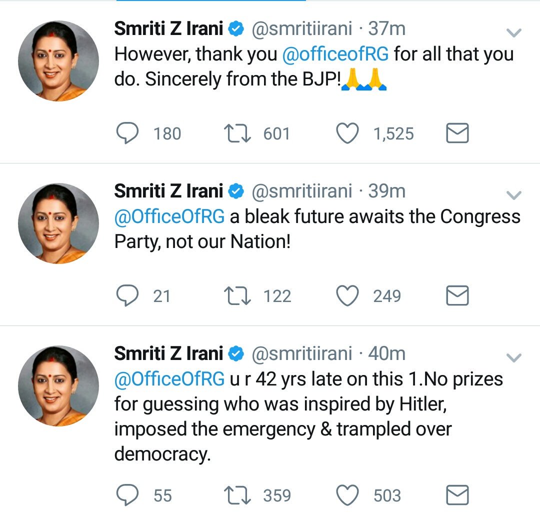 @smritiirani hits @OfficeOfRG out of Park :) More Power to u Ma'ampic.twitter.com/kh7FUFhx72