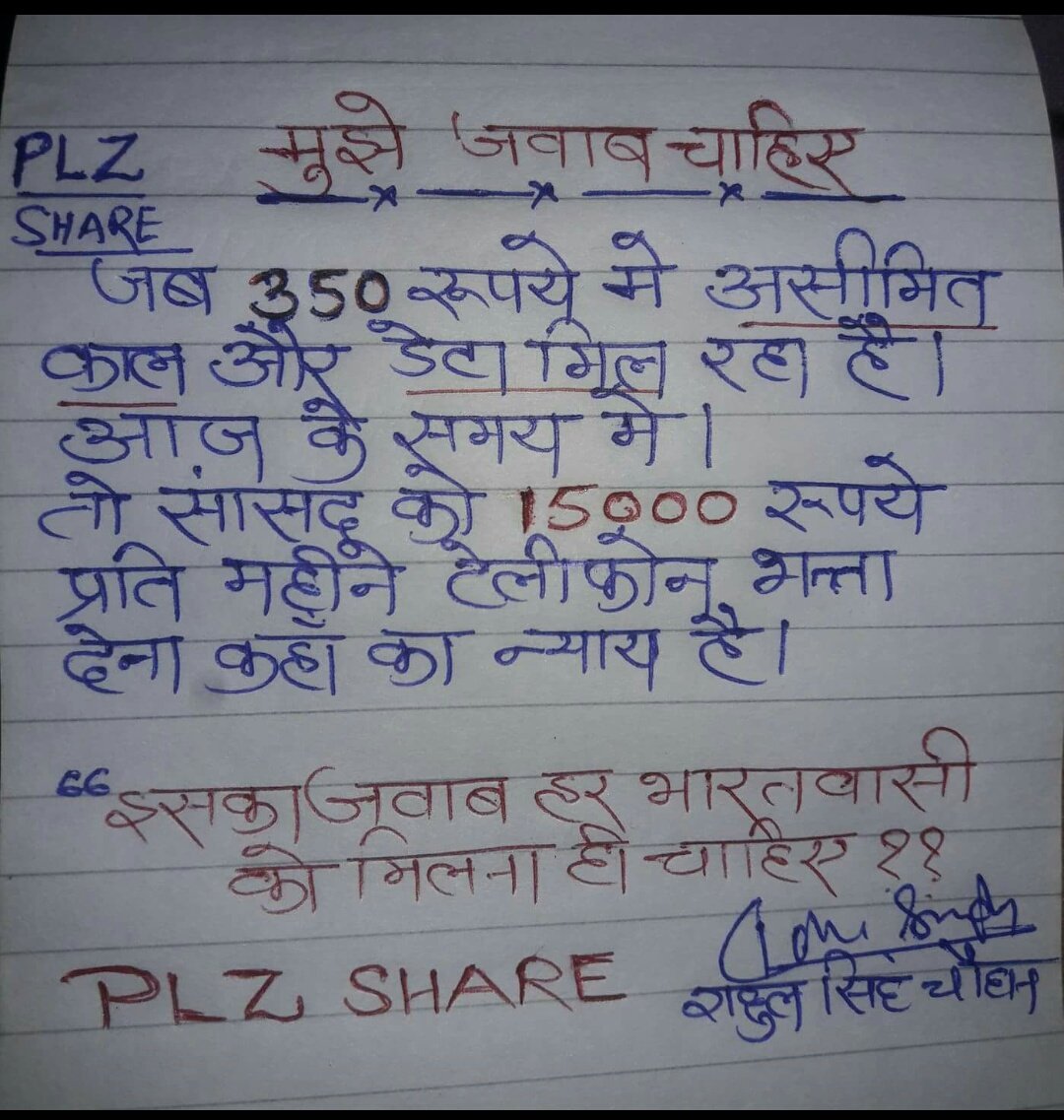 What bout MPs getting15000 as telephone allowance when all telecom operators have tariffs under 500 rs please ans need transparency on this