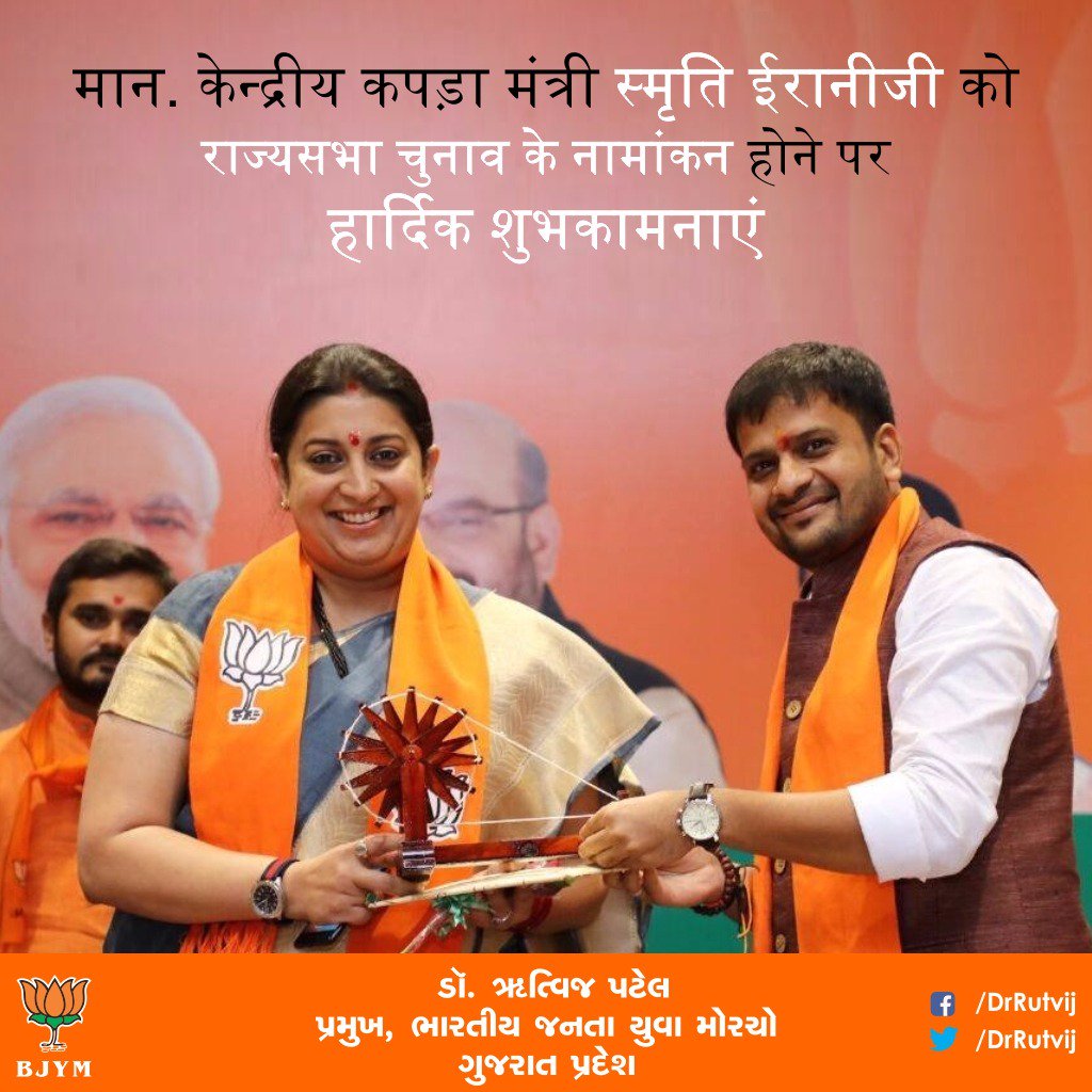 मान. केन्द्रीय कपड़ा मंत्री श्रीमती @smritiiraniजी को #RajyaSabhaElection लड़ने के लिये पक्ष के द्वारा नामांकन होने पर हार्दिक शुभकामनाएंpic.twitter.com/3F9Fd7rkHS