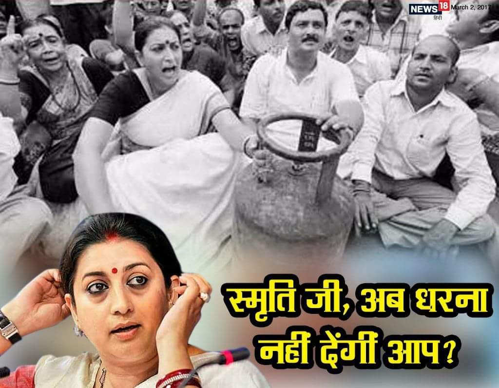 गैस सिलेंडर की कीमत 94 रूपए बढ़ने पर भाजपाईयों की केंद्रीय मंत्री स्मृति ईरानी ने भी मोदी और भाजपा सरकार के खिलाफ सड़क पर धरना देना शुरूकियाpic.twitter.com/ciPL7mUtow