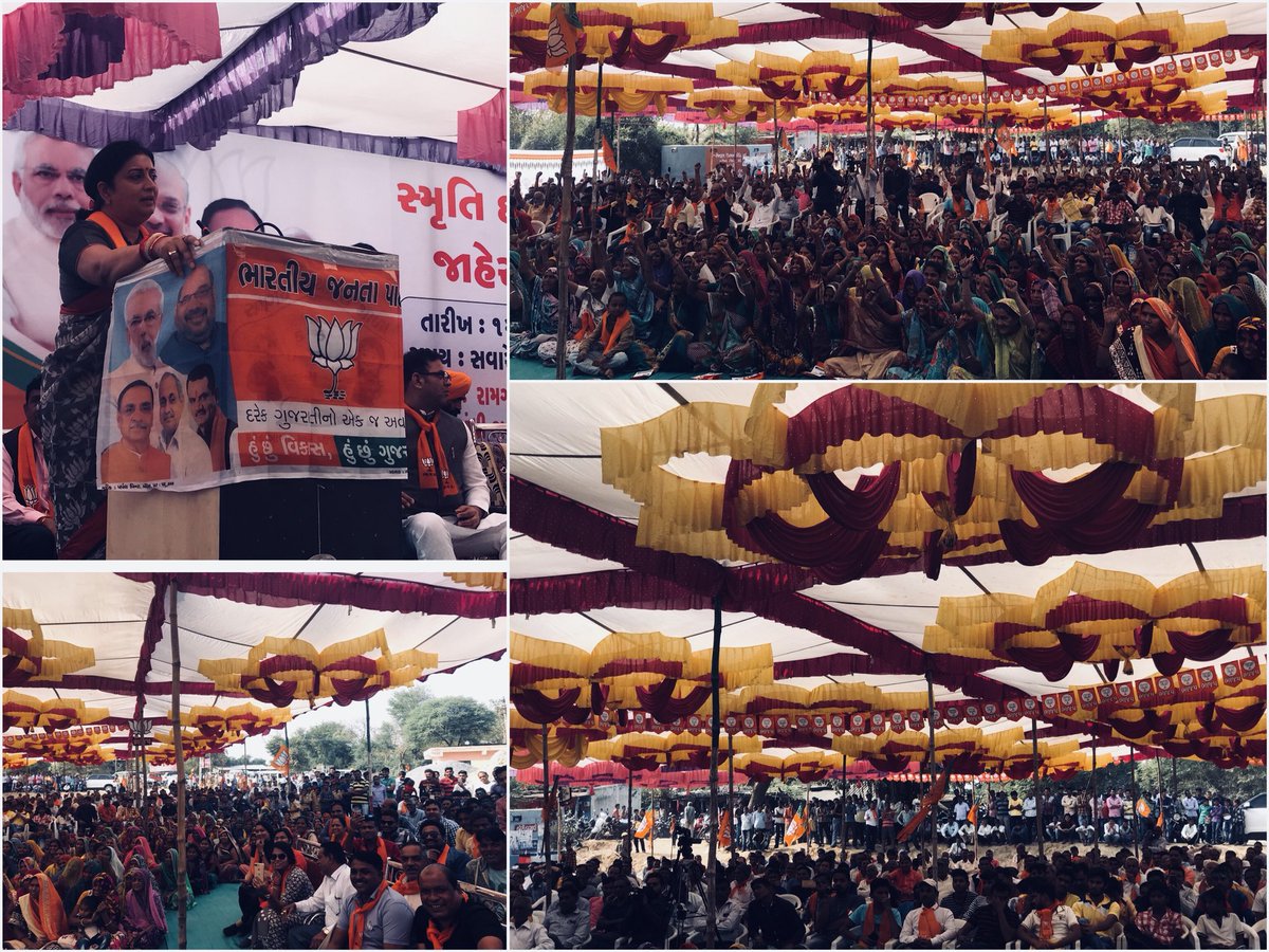 Last day of campaign in Gujarat -addressed a public meeting in Angadh village, Vaghodia constituency and met citizens of Unjha constituency in Mehsana district.pic.twitter.com/D24Xl2qitw