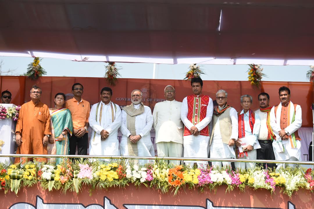 Congrats to CM Biplav Deb ji & his team! BJP govt in Tripura is a sign of a very positive & beneficial historical start for the development of the state & welfare of the people of Tripura! "Ab Tripura kaa tej vikass hoga! Har pariwar samriddh hoga!!" Jai Hind! Vande Mataram!pic.twitter.com/qrO4Fv1d8u
