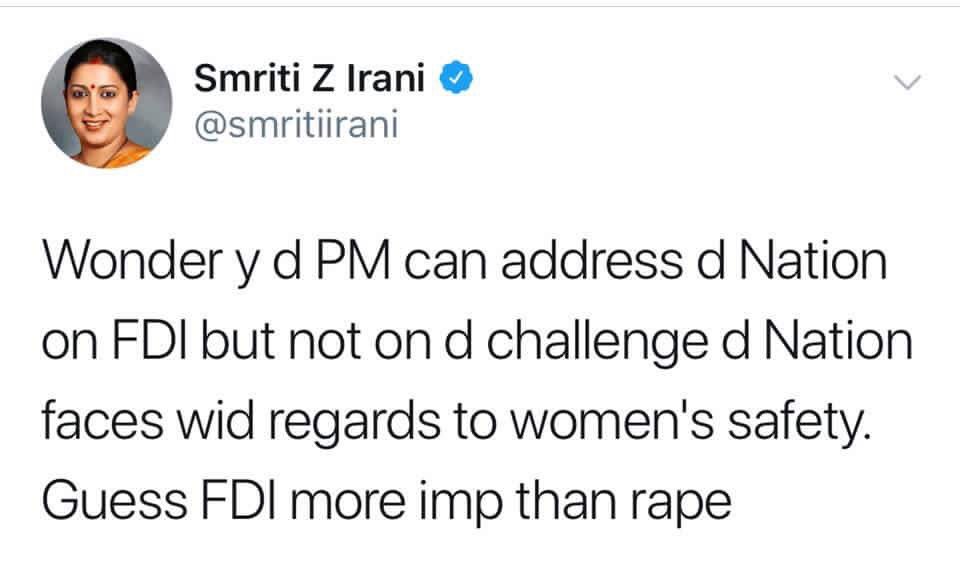मेडम!!एक विजिट``उन्नाव रेप पीड़िता``के घर पर भी कर देती!! थोड़े जख्म हल्के हो जाते उसके! निर्भया कांड के समय तो#