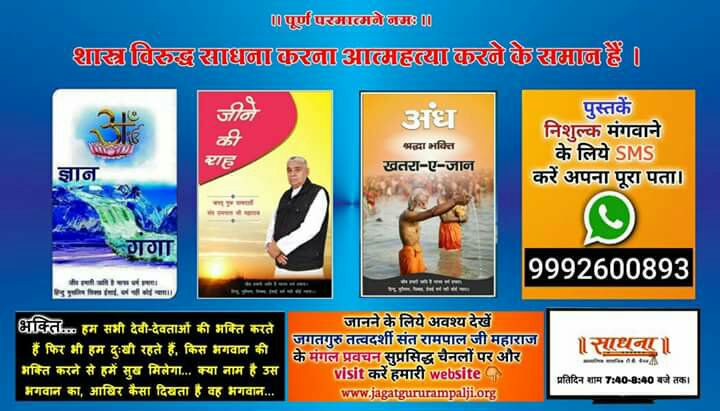 धरती पर अवतार संत रामपाल जी महाराज आ चुके है जिनके ग्यान के आगे कोई भी धर्मगुरु नही टिक पाया इसलिए सभी से हमारी प्रार्थना है की #संत_रामपाल_जी_महाराज की शरण ग्रहण करें क्योकी केवल संत रामपाल जी महाराज ही हमे इस काल लोक से मुक्ति दिला सकते है।अवश्य देखिए साधना tv पर 7:30 pmpic.twitter.com/bgbLLeggL7